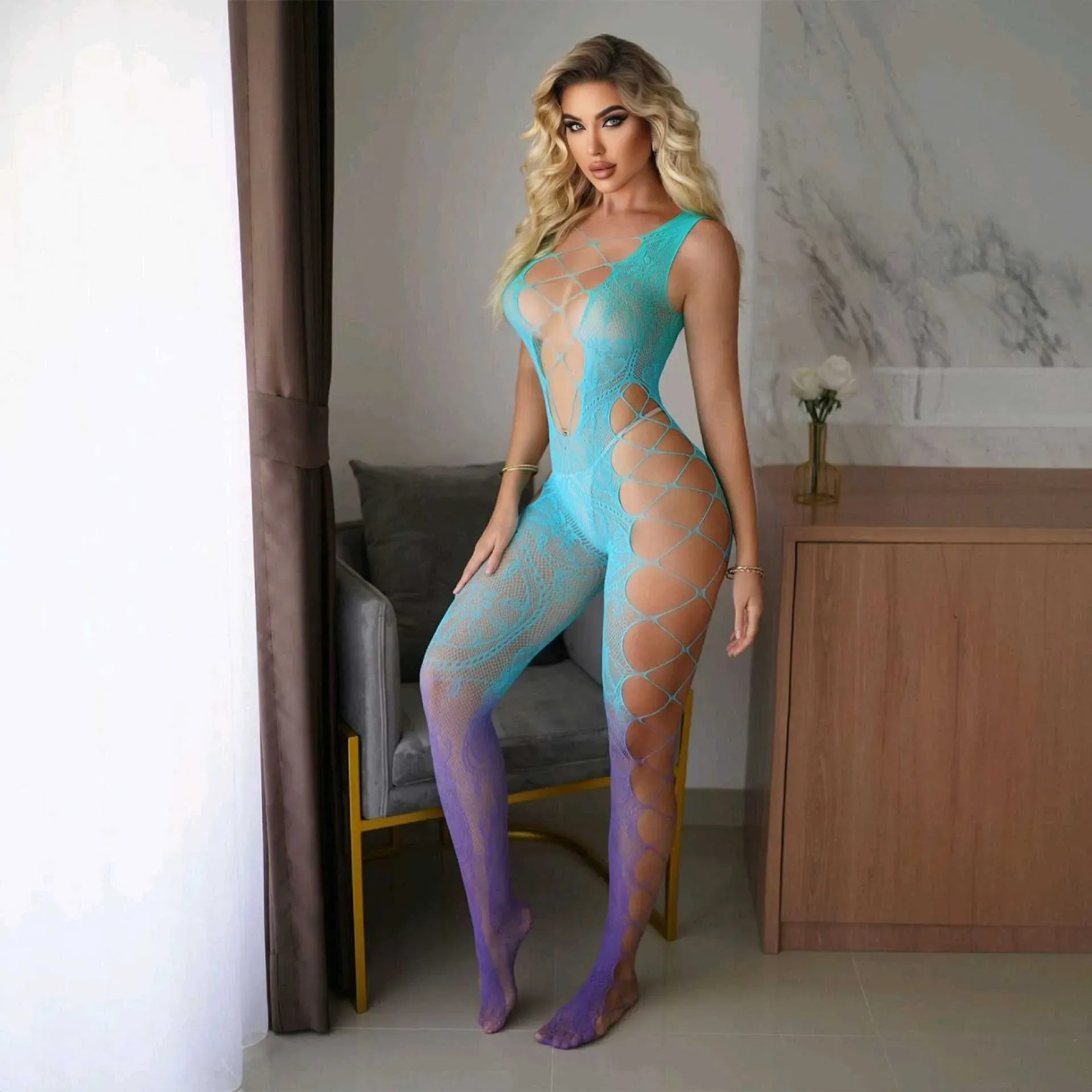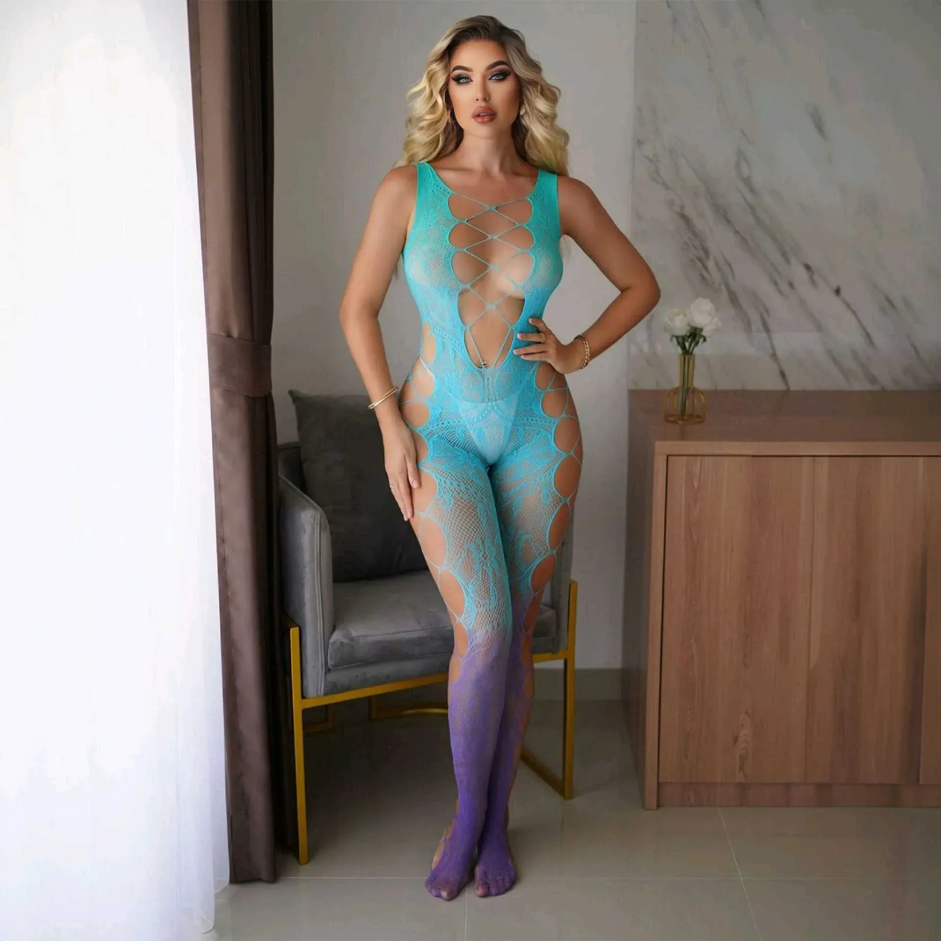ENTERIZO MALLA [Degradado] Azul Celeste/Lila 🩵💜 REF. QH503