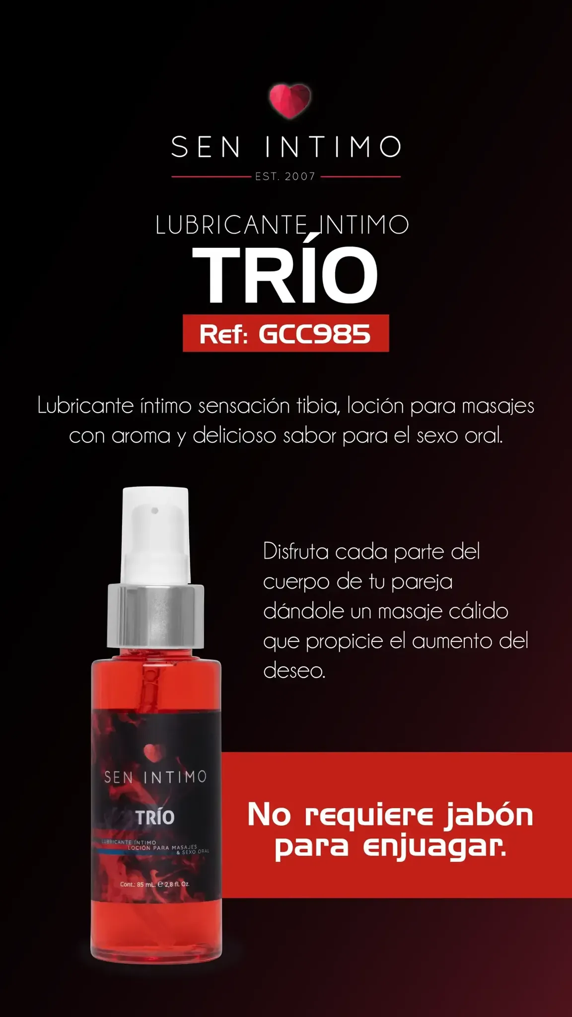 LUBRICANTE TRÍO PLACER 3en1 85ml By. SEN ÍNTIMO