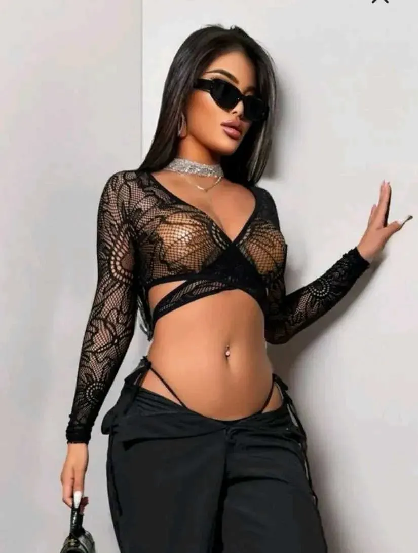 - Presentación: Pieza en Malla en nylon de DuPont y spandex, con apliques de piedras brillantes