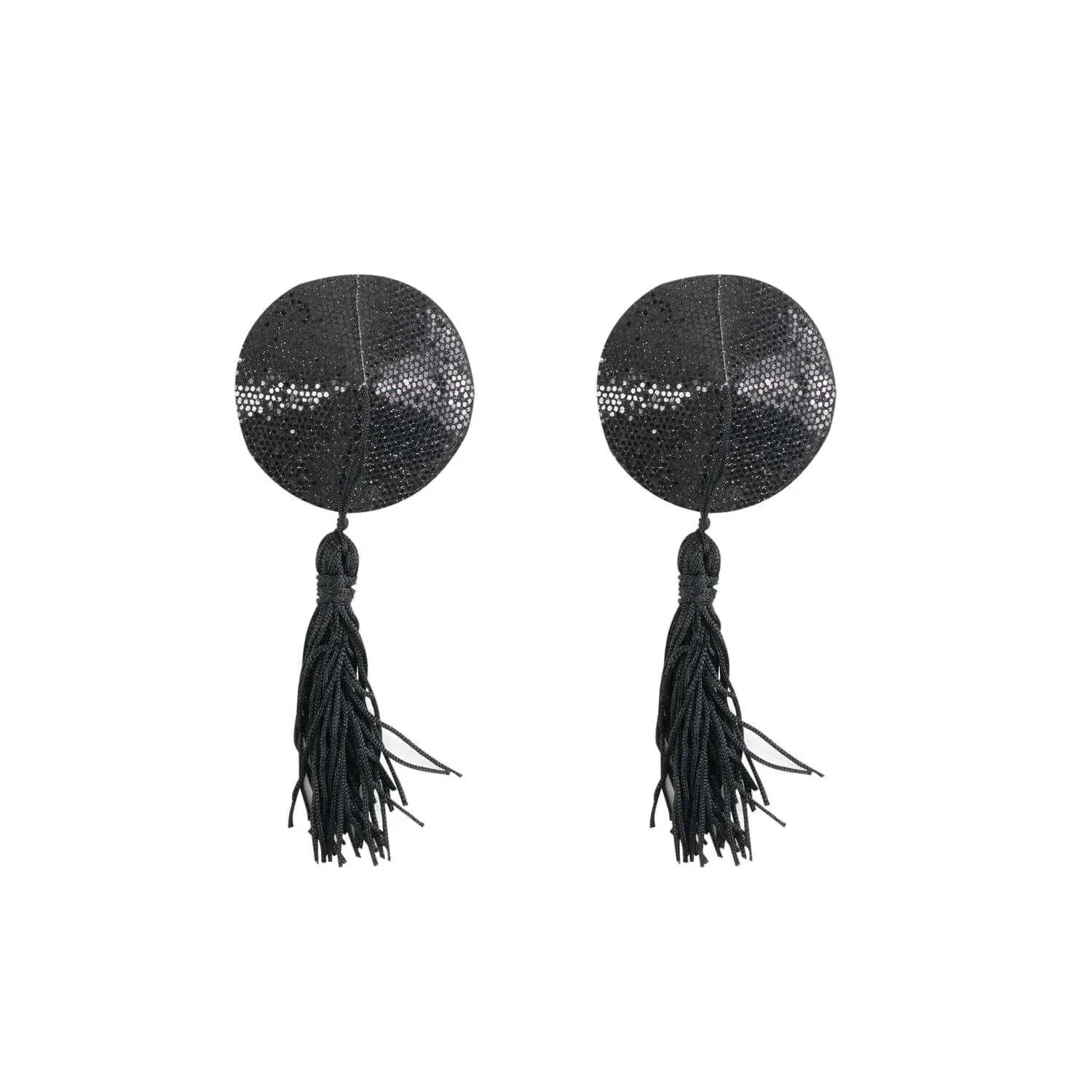 Estas atrevidas pezoneras puntiagudas en un enigmático color negro son la esencia de la provocación y el misterio. Cada pezonera está adornada con una elegante borla colgante que agrega un toque de lujo a tus momentos más íntimos.